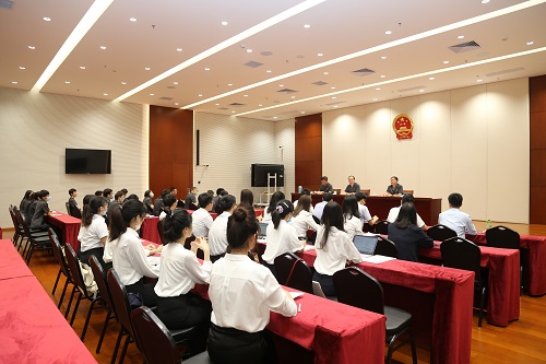 下午,我院七名硕士研究生参加了实习生岗前培训,主审法官寇秉辉为大家讲述如何做好审判辅助工作;书记员黄淇为大家介绍书记员的工作内容;诉讼服务中心副主任黄有湘为大家介绍了诉讼服务中心的相关职能、理念与办事流程,并表示所有实习生将轮流到此实习一周,近距离体验诉与访。最后,综合办苗嘉春副主任向实习生们宣读了《法律实习生行为规范》。