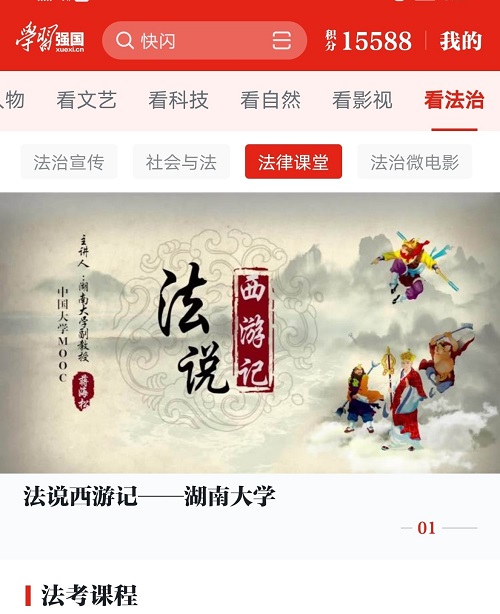 直接在“学习强国”搜索窗口搜索“法说西游记”,即可跳至课程页面。