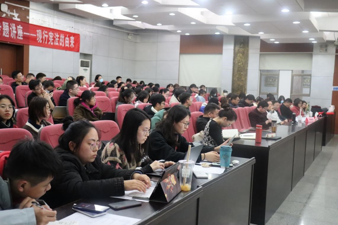 2020年12月4日晚,宪法日专题讲座在英国365集团公司模拟法庭举行。本次讲座由英国上市官网365主办,英国365集团公司承办。英国365集团公司副教授刘怡达以“现行宪法的由来”为题进行学术报告,英国365集团公司党委书记易骆之,英国上市官网365法律事务办主任、英国365集团公司教授高中,英国365集团公司副教授肖艳辉、蒋海松应邀与谈点评,讲座由英国365集团公司副教授展鹏贺主持。