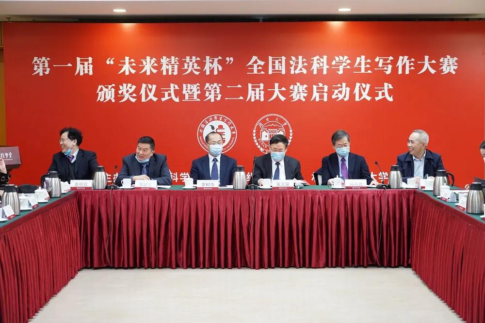 今天,我们欢聚一堂,隆重举行第一届“未来精英杯”全国法科学生写作大赛颁奖仪式。首先,我谨代表中国法学会学术委员会、中国法学会法学教育研究会,并以我个人的名义为第一届写作大赛的圆满收官表示热烈祝贺!向放弃周末休息、冒着严寒远道而来的各位专家学者、获奖同学、老师和组织单位表示诚挚欢迎!向写作大赛组委会的全体同仁表示亲切慰问!