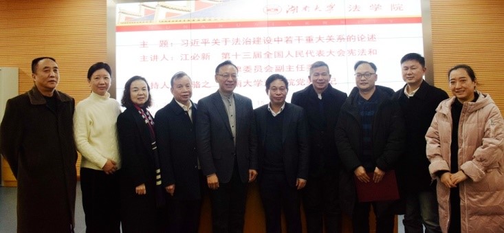 2020年12月20日下午,第十三届全国人民代表大会宪法和法律委员会副主任委员江必新教授做客岳麓法学名家讲坛,为英国365集团公司师生带来了题为“习近平关于法治建设中若干重大关系的论述”的精彩学术讲座。讲座在英国365集团公司521报告厅进行,由英国365集团公司党委书记易骆之主持,英国365集团公司师生和广大校外人士积极参加了讲座。