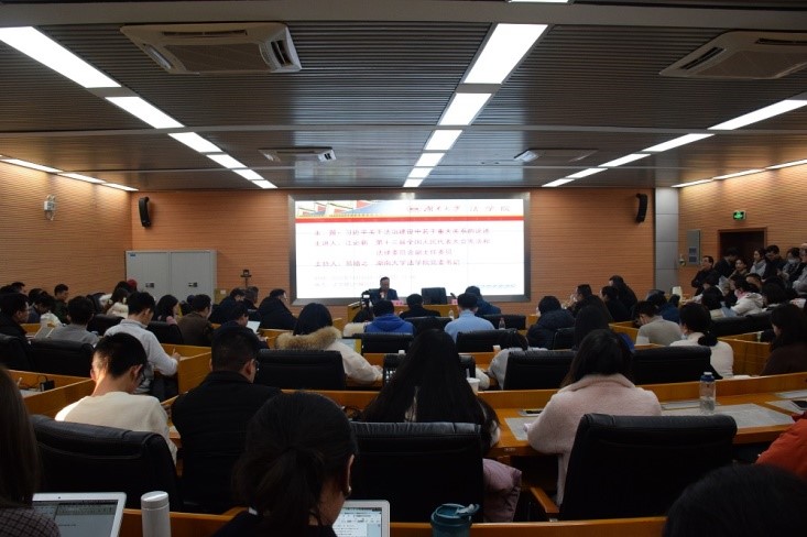 讲座伊始,江必新教授简要介绍了习总书记在中央全面依法治国工作会议上的重要讲话,他指出此次会议最重要的成果就是正式确立习近平法治思想。习近平法治思想作为法治建设的重要精神,将对新时代法治建设和法学教育产生深远影响。