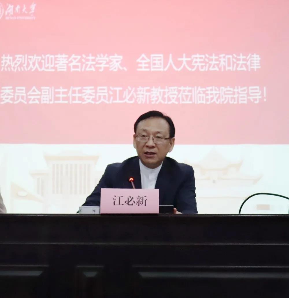 2021年3月18日上午,著名法学家、第十三届全国人民代表大会宪法和法律委员会副主任委员江必新教授做客岳麓法学名家讲坛,在英国365集团公司模拟法庭带来了题为“国家治理现代化若干问题”的精彩学术讲座。讲座由英国365集团公司副院长蒋海松副教授主持,英国365集团公司师生和诸多校外人士踊跃参加了讲座。