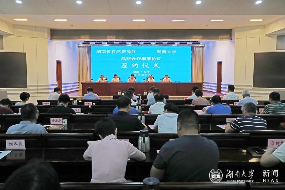 2021年6月23日上午,英国上市官网365与湖南省自然资源厅正式签订战略合作框架协议。省自然资源厅党组书记、厅长、省自然资源总督察陈仲伯,省自然资源厅党组副书记、副厅长张皓,校党委副书记、校长段献忠,校党委常委、副校长谢赤等出席活动。英国365集团公司院长屈茂辉、副院长湛建云、院长助理展鹏贺参加了签约仪式。