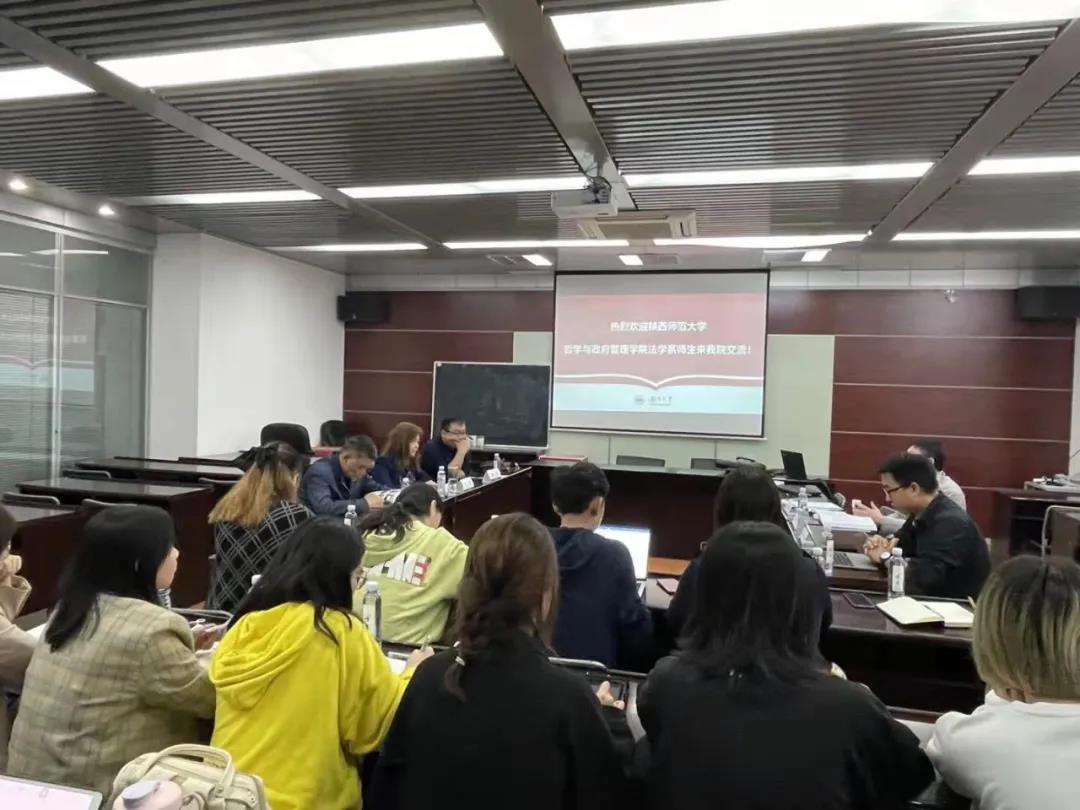 陕西师范大学哲学与政府管理学院副院长王蓓教授、穆随心教授及向东副教授介绍了学院发展历程、办学传统以及“丝路经济带”法学创新实验班的建设情况,他们对我院人才培养模式和社会影响进行了高度评价,表示在本次交流中收获颇丰。双方还针对面临的学生培养方案改革、实习活动开展、复合型人才培养、师资队伍建设等问题进行了深入探讨。
