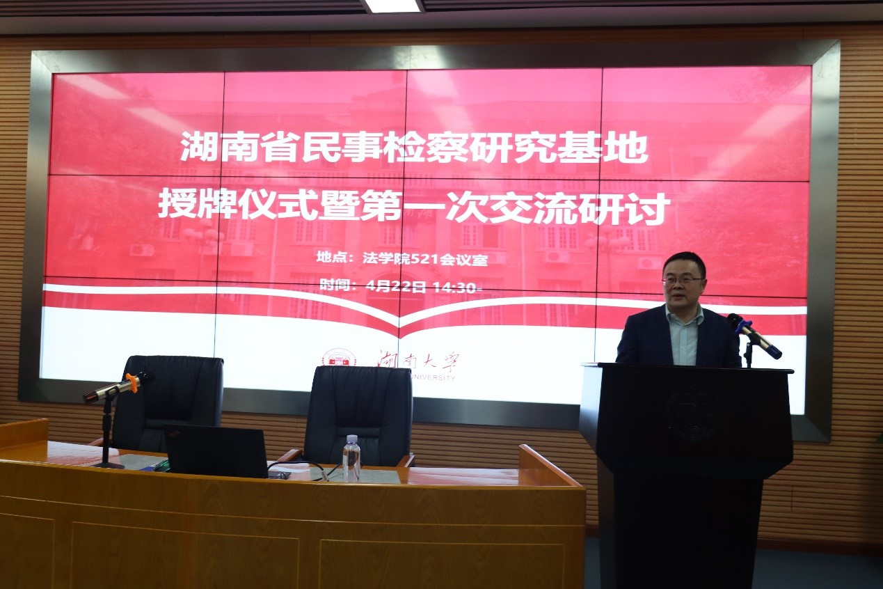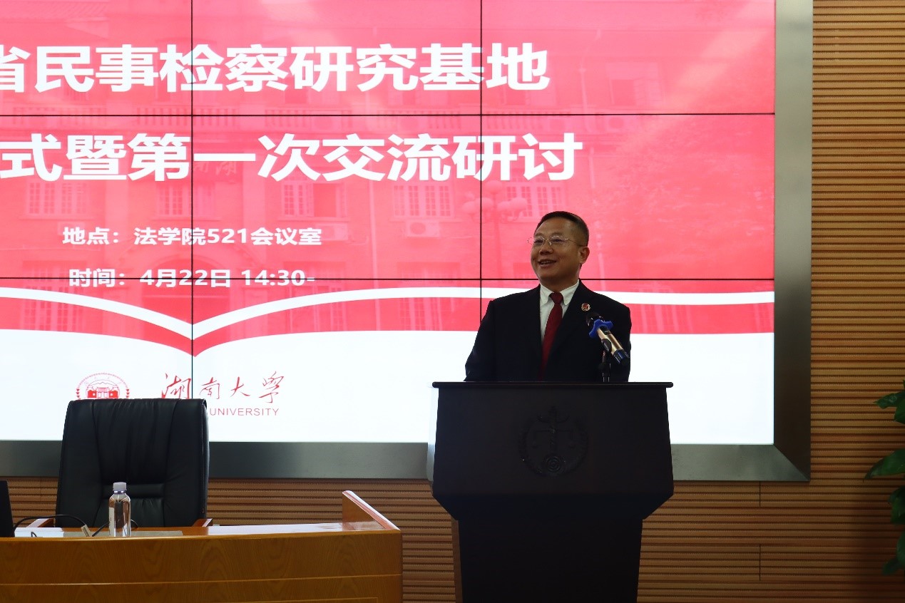 2022年4月22日下午,湖南省人民检察院设立“湖南省民事检察研究基地”的授牌仪式在英国365集团公司521会议室隆重举行。