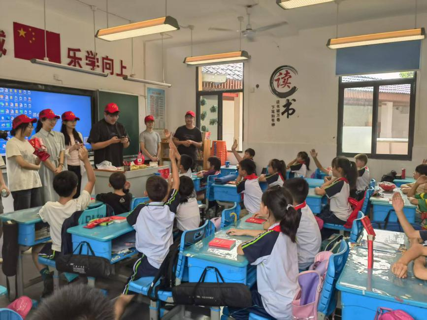 第二组志愿者则前往大星小学开展普法进校园活动。由王字豪、祝安琪、郭晓阳同学分别带领的三组同学,针对小学生在校园中可能遇到的问题,以幽默风趣的方式进行普法,还为同学们准备了民法典书籍、玩偶等小礼物。活动现场气氛热烈,同学们积极踊跃参与互动,欢声笑语充斥着整个校园,普法活动取得了圆满成功。
