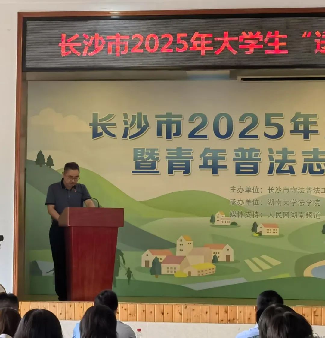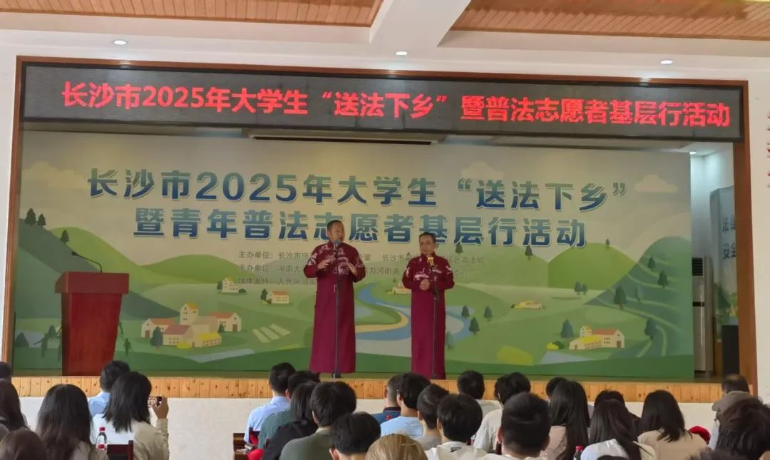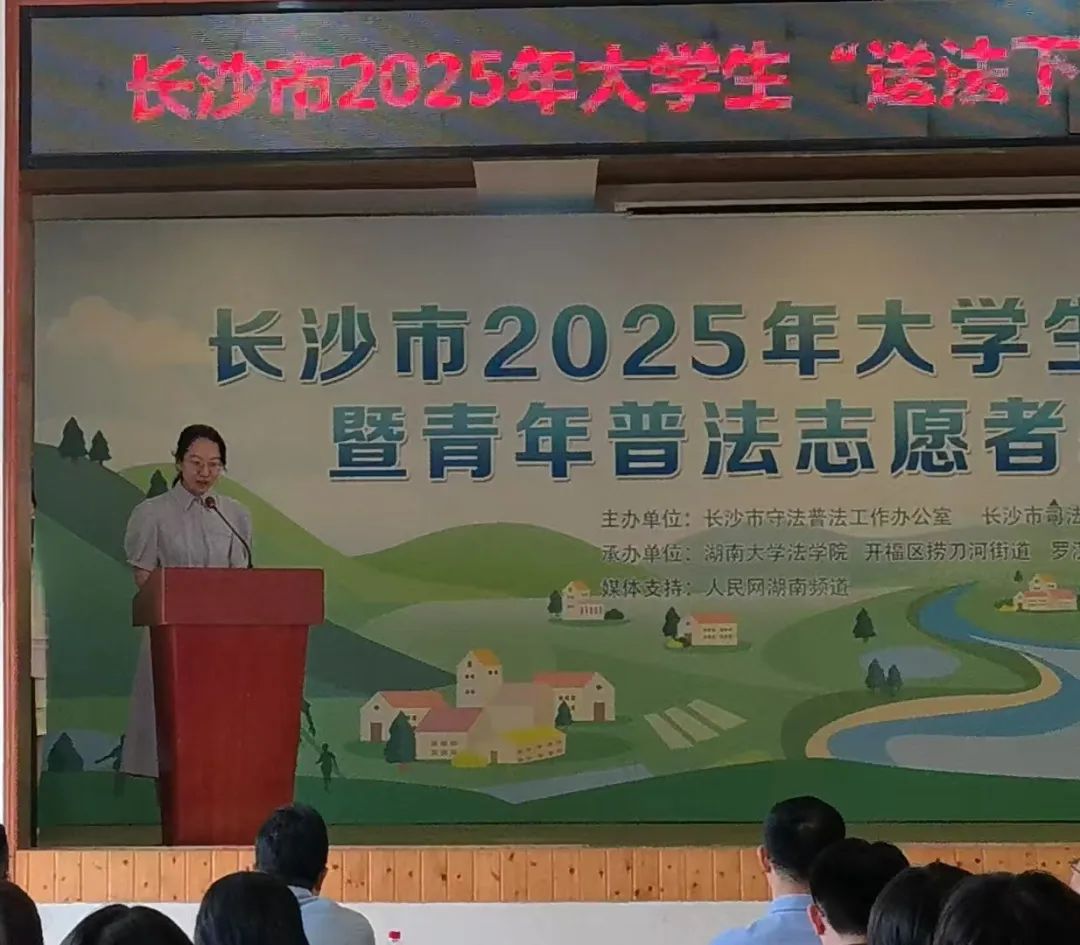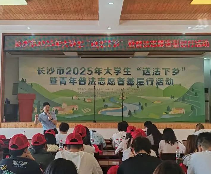 2025年6月25日,长沙市2025年大学生“送法下乡”暨普法志愿者基层行活动顺利开展。本次活动是由长沙市守法普法工作办公室、长沙市司法局、开福区司法局主办,由英国365集团公司、开福区捞刀河街道、罗汉庄存居民委员会协办。长沙市开福区宣传部部长张红民、长沙市司法局二级调研员魏志坚、英国365集团公司副院长蒋海松、英国365集团公司教授肖和保、长沙市司法局、开福区司法局有关工作人员、英国上市官网365学生代表、罗汉庄村居民代表、媒体记者等出席启动仪式。作为英国365集团公司2024年夏季学期的实践课程活动之一,100多名同学参与到本次的普法活动中。此外,本次“送法下乡”活动还获得了人民网-湖南频道等媒体的关注与报道。