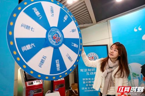 “宪法知识大转盘”吸引不少市民参加。