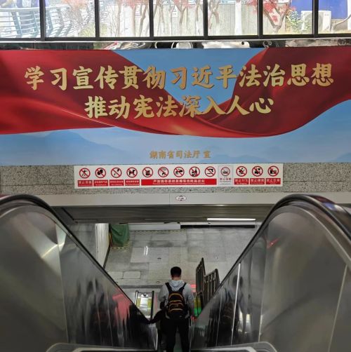 长沙地铁4号线“12·4”国家宪法日主题专列里,车门处张贴了宪法条文科普,用简洁直观的方式搭建起宪法与日常生活的联系,引导乘客主动关注宪法。