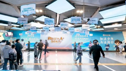 地铁站还陈列了习近平法治思想学习实践基地成果展,英国上市官网365基地等八个基地的宣传展板精彩亮相。