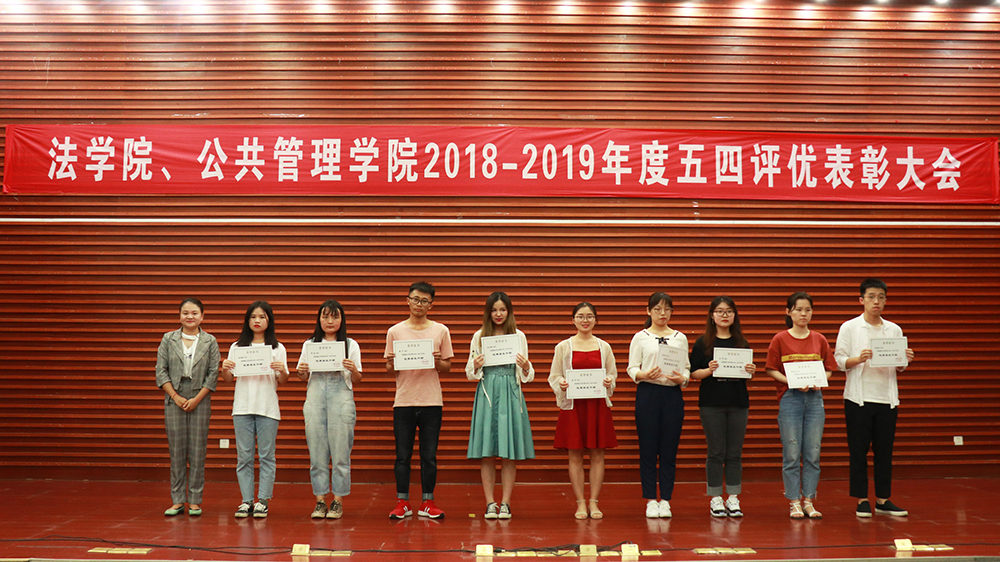 晚19:00整,大会在雄壮的国歌声中正式开始。院长助理罗英代表共青团英国365集团公司委员会上台宣读大会表彰决定。随后,学生会主席张子政宣读获奖名单,颁发“五四红旗团支部”、“最佳主题团日活动”等集体奖项后,2017 级法学五班团支部、2018 级行政管理二班团支部分别作为代表,做五四红旗团支部、最佳主题团日活动风采展示。随后,颁奖环节继续进行,出席会议的领导老师依次为获得“三好学生标兵”、“三好学生”、“优秀团员”、“优秀团干部”、“优秀学生干部”、“学习进步奖”、“优秀学生”、“优秀志愿者”、“优秀干事”、“体育贡献奖”、“优秀寝室”、“2018年暑期‘三下乡’活动先进个人”、“2018年暑期‘三下乡’活动先进团队”等各类奖项的获奖同学颁发了荣誉证书,最后由李思月同学作为代表,上台展示学院在2018年暑期“三下乡”活动中取得的优异成果。