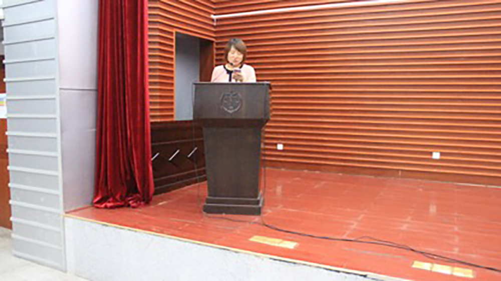 (2018年暑期“三下乡”活动先进团队获奖同学代表李思月汇报成果)