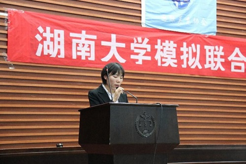 李老师致辞完毕,本届模拟联合国大会的秘书长高亚娜和学术统筹马舒腾分别就湖大模联的历史与发展以及本次大会的筹办工作做了较为详尽的介绍,并承诺,不论是作为组委还是作为学术团队,模联成员都将全力做好本会的筹办工作。最后,开幕式在主席“授锤仪式”中落下了帷幕。