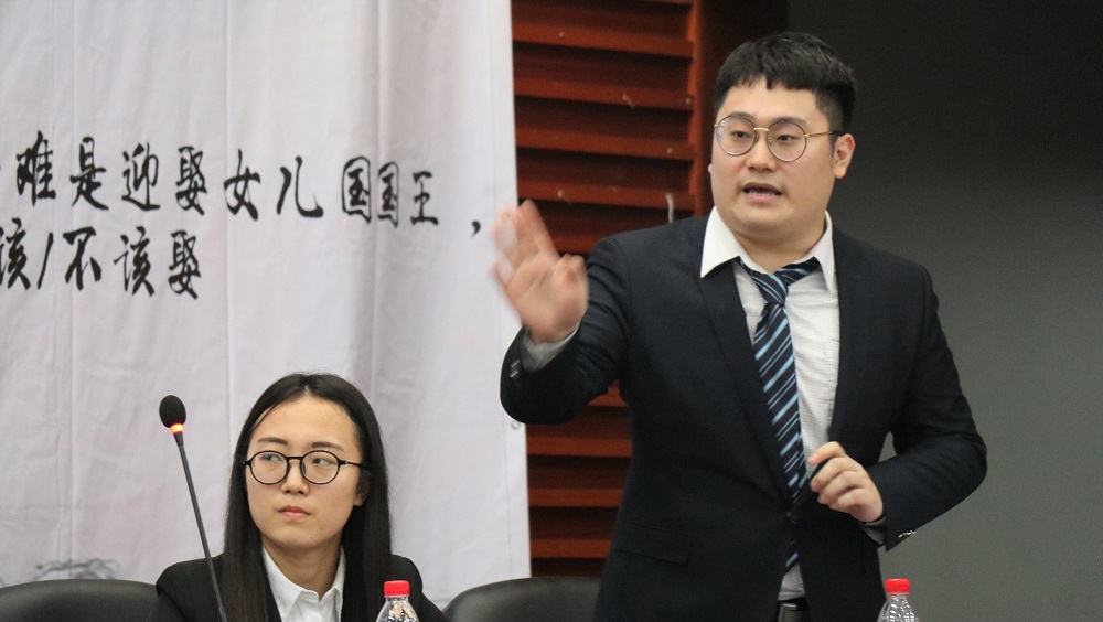 (二辩汪尚娇在质询环节同对方进行逻辑较量)