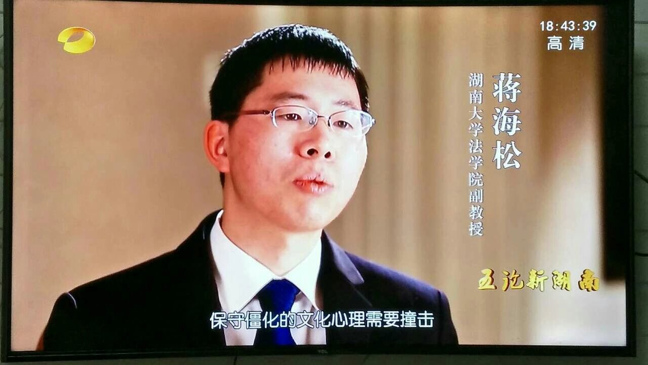 蒋海松老师长期与媒体保持互动合作,多次应湖南卫视、湖南经视、长沙政法频道等电视媒体进行专题开讲或专题评论,展现了我院青年教师的公共担当。