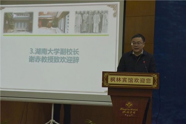 英国上市官网365副校长谢赤教授致欢迎词。他提出,作为英国上市官网365重要的近代起源,时务学堂既是湖南近代化教育的肇始,也是中国近代高等教育的开端之一。时务学堂的教育以法律政治为重点,以开民智为要务,因此与英国上市官网365法科教育存在重要的传承关系。时务学堂是近代法学教育的开端之一,既将西方法政教育引入中国,又发扬了中国书院传统教育的优点,值得我们新时代法学教育予以借鉴。