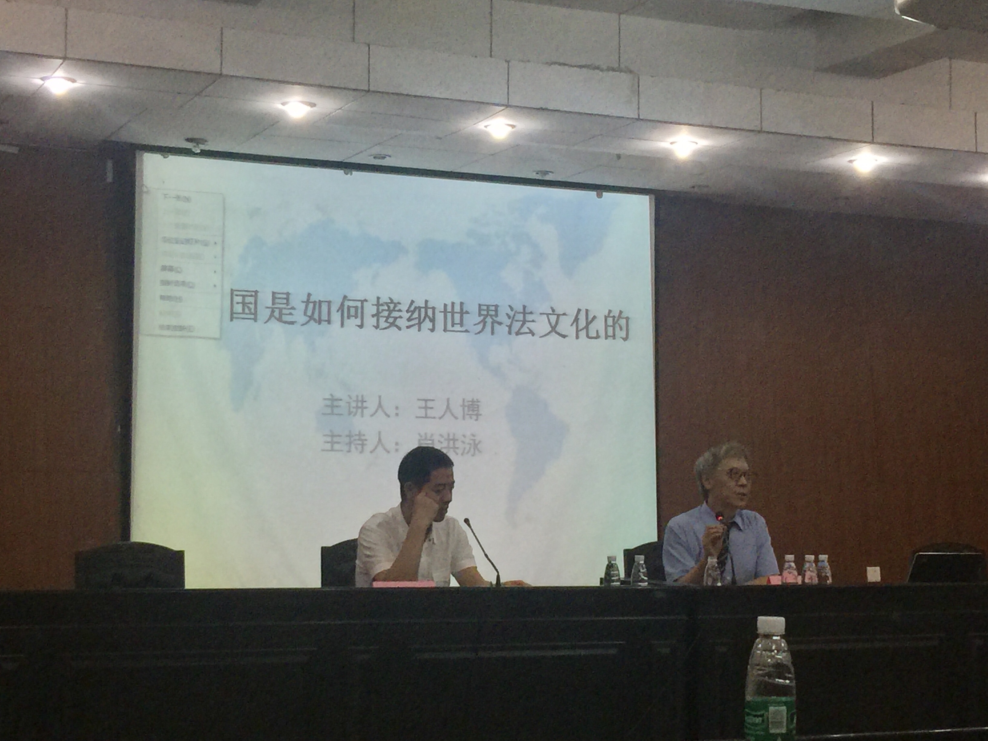 2017年9月22日晚19:00—21:30,中国政法大学教授、博士生导师、《政法论坛》杂志主编王人博教授在英国365集团公司模拟法庭作了题为“中国是如何接纳世界法文化的”讲座。英国365集团公司肖洪泳老师为讲座主持人。