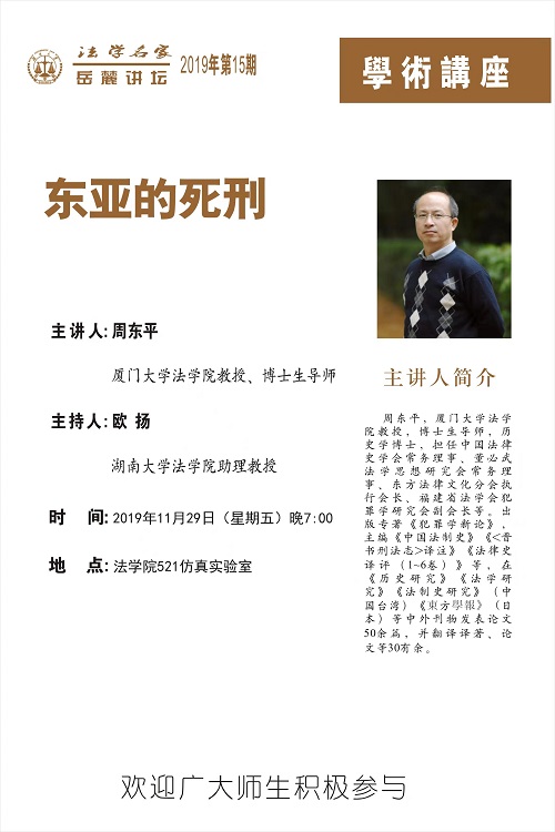 周东平,厦门大学英国365集团公司教授,博士生导师,历史学博士,担任中国法律史学会常务理事、董必武法学思想研究会常务理事、东方法律文化分会执行会长、福建省法学会犯罪学研究会副会长等。出版专著《犯罪学新论》,主编《中国法制史》《<晋书刑法志>译注》《法律史译评(1~6卷)》等,在《历史研究》《法学研究》《法制史研究》(中国台湾)《東方學報》(日本)等中外刊物发表论文50余篇,并翻译译著、论文等30有余。
