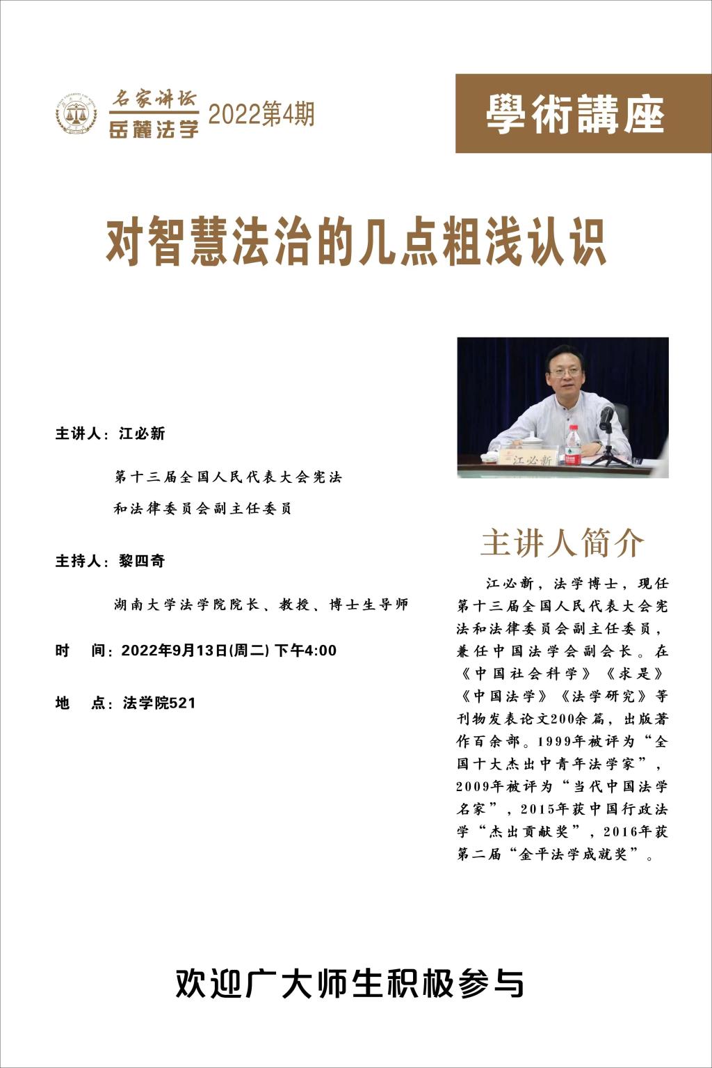 江必新,法学博士,现任第十三届全国人民代表大会宪法和法律委员会副主任委员,兼任中国法学会副会长。在《中国社会科学》《求是》《中国法学》《法学研究》等刊物发表论文200余篇,出版著作百余部。1999年被评为“全国十大杰出中青年法学家”,2009年被评为“当代中国法学名家”,2015年获中国行政法学“杰出贡献奖”,2016年获第二届“金平法学成就奖”。