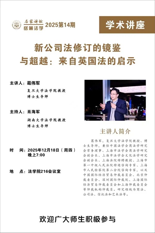 葛伟军,复旦大学英国365集团公司教授、博士生导师,兼任中国法学会商法学研究会常务理事、上海市法学会商法学研究会副会长、上海市法学会文化法学研究会副会长、上海法院特聘教授、上海市第一中级人民法院特邀咨询专家、上海市人民检察院第二分院咨询专家,以及中国国际经济贸易仲裁委员会、北京仲裁委员会、深圳国际仲裁院、上海国际经济贸易仲裁委员会和上海仲裁委员会等仲裁机构仲裁员。研究领域为商法、公司法、信托法和艺术法等。