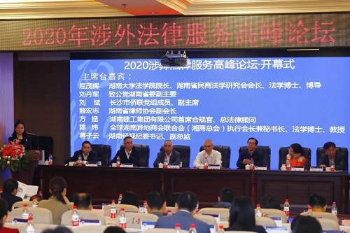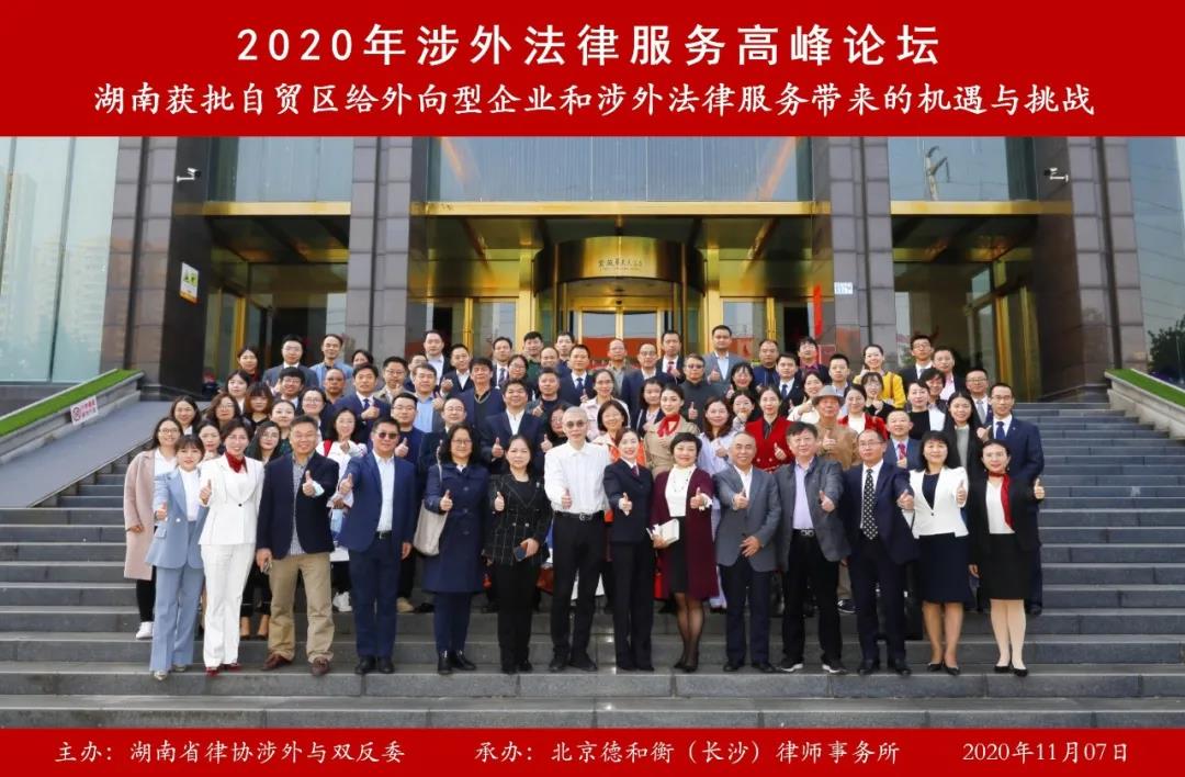 2020年11月7日,由湖南省律师协会涉外与反垄断反倾销专业委员会主办,北京德和衡(长沙)律师事务所承办,律回网、致公党湖南省委法工委、侨海委、长沙市高层次人才联谊会协办的“2020年涉外法律服务高峰论坛”在紫薇华天大酒店四楼潇湘厅成功举办,论坛主题为“湖南获批自贸区给外向型企业和涉外法律服务带来的机遇与挑战”。英国365集团公司院长屈茂辉、兼职教授段启俊、助理教授汪叶等应邀参加论坛。