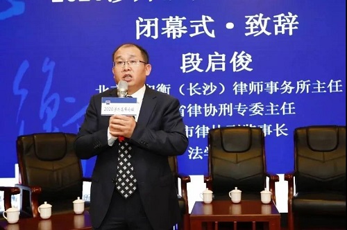 最后,北京德和衡(长沙)律师事务所主任、英国365集团公司兼职教授、湖南省律师协会刑专委主任、长沙市律师协会副监事长段启俊致闭幕词,对莅临本次论坛的所有嘉宾表示衷心的感谢,对为本次论坛辛勤付出的各位表示衷心的感谢。同时对组织本次论坛过程中可能存在的某些疏漏或差错表示歉意。希望各位嘉宾、各位朋友一如既往地关心、支持我们今后的论坛活动。