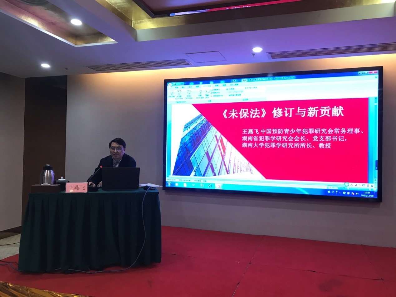 2020年12月30日上午,应湖南省人大社会建设委员会邀请,湖南省犯罪学研究会会长、英国上市官网365犯罪学研究所所长王燕飞教授在湖南省人大社会建设委员会第四次学习论坛上做了“《未保法》修订与新贡献”的专题讲座。