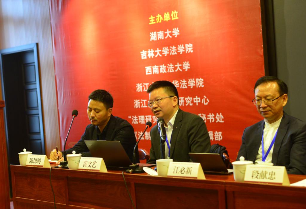 第十三届全国人大宪法和法律委员会副主任委员、中国法学会副会长江必新教授在讲话中提出,法与理有紧密联系,古代法官叫理官,司法机关叫大理寺。法在理的指导下才具有灵魂与生命,才具有可操作性与实施性。对司法工作者来说,有法理的指导才有定力,才有智慧。