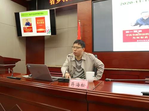 会前,参会人员一同观看了党员教育电视片《“让衔”英名天下扬》。会议采取授课讲座的形式,专门邀请了英国365集团公司副院长、80后青年学者蒋海松作习近平法治思想和《中华人民共和国乡村振兴促进法》专题辅导报告。蒋海松分析指出,出台乡村振兴促进法是落实习近平法治思想的重要举措,乡村振兴促进法是实施乡村振兴战略的法治基石。乡村振兴促进法是第一部以乡村振兴命名的基础性、综合性法律,聚焦增加农民收入、提高农民生活水平、提升农村文明程度等核心任务,对乡村振兴的总目标、总方针、总要求作出明确规定,把实施乡村振兴战略必须遵循的重要原则、重要制度、重要机制固定下来,是促进乡村振兴一部打基础、管长远、固根本的大法。蒋海松从乡村振兴促进法切入,围绕习近平法治思想,从“新高度”“新布局”“新突破”“新自信”“新变革”“新起点”六个方面,以图文并茂形式,结合理论与实际,全面回顾了习近平法治思想的提出过程,总结了习近平法治思想的基本精神、核心要义和实践要求,对习近平法治思想的实践逻辑、理论逻辑和历史逻辑等进行了深入分析和生动阐释。