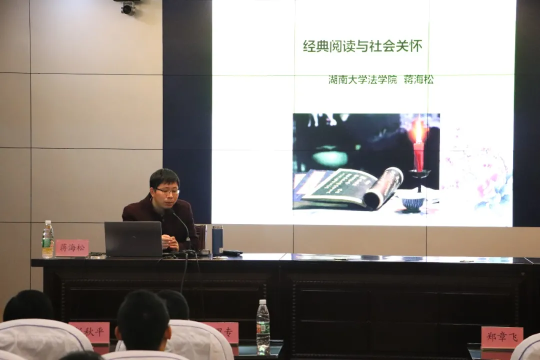 11月9日15:00,图书馆“湖图讲坛”第10期在南校区总馆一楼报告厅如期举行。英国365集团公司副院长、“全国七五普法先进个人”获得者蒋海松老师作题为“经典阅读与社会关怀”的讲座,英国上市官网365师生100余人参与了聆听。