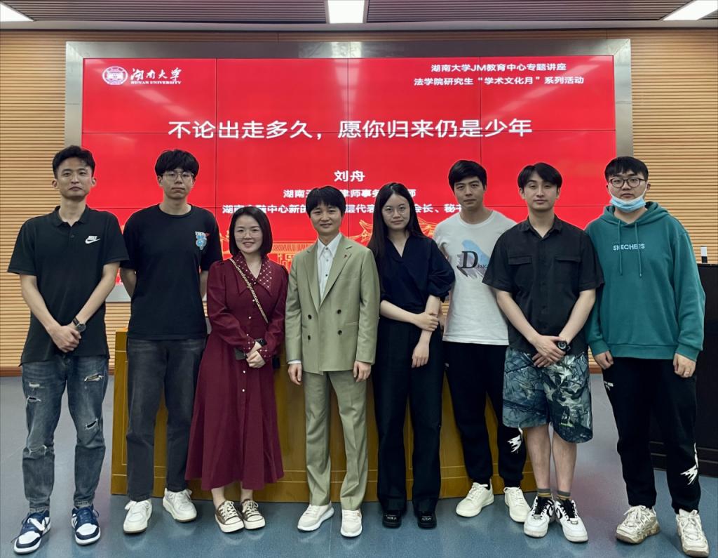 2023年4月13日晚,湖南天地人律师事务所刘舟律师应邀在英国365集团公司开展主题讲座。讲座主题为“不论出走多久,愿你归来仍是少年”,刘舟律师结合他参加律政纪录片和自身职业的经验,与同学们探讨了法律人的成长与修炼。