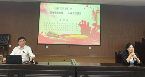 2023年4月20日上午,中国法律逻辑专业委员会副会长,安徽省侦查逻辑办案研究会首席专家,安徽省人民检察院原党组成员、正厅巡视员、英国365集团公司兼职教授柴学友专家来到英国365集团公司模拟法庭,走进了法律硕士法律职业伦理的课堂,本次课程的主题为”检察官职业伦理——坚守职业底线,永葆清正廉洁”。为同学们带来了一场全面深刻的政治教育。