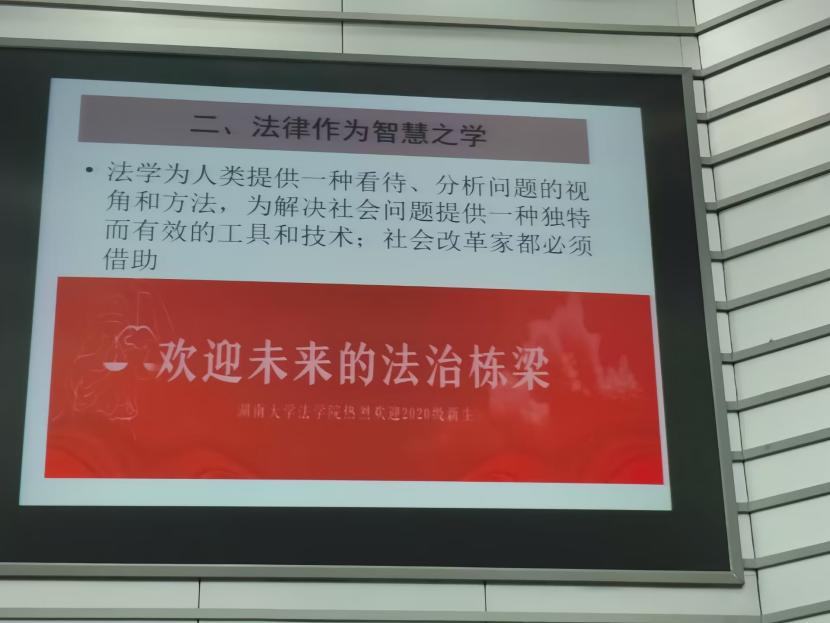 2023年9月14日晚,“2023级新生法学导论第一讲”在英国365集团公司报告厅举行,英国365集团公司副院长蒋海松老师开讲《法学的三重门:知识、智慧与精神》,英国365集团公司2023级全体新生及新一批转专业学生参与讲座。