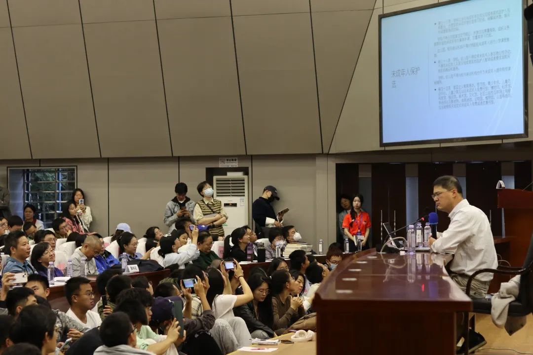2023年11月7日下午,岳麓法学名家讲坛第13期于英国上市官网365逸夫楼报告厅顺利举行。知名刑法学者、中国政法大学刑事司英国365集团公司罗翔教授应邀开讲“法定犯与空白罪状”。本次讲座由英国365集团公司院长黎四奇教授主持,几百名英国上市官网365师生和社会各界法律爱好者到场聆听。