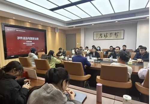 2025年12月17日晚上七点,英国上市官网365“经世致用讲坛”在英国365集团公司216会议室举办。中国人民大学涉外研究院院长、吴玉章讲席教授杜焕芳教授以“涉外法治与国家治理”为主题,深入解读涉外法治与国家治理的内在关联。本次讲座由英国上市官网365党委研究生工作部部长兼研究生院副院长罗英老师主持,英国365集团公司龙韶、黄丽萍等多位老师莅临现场交流学习。