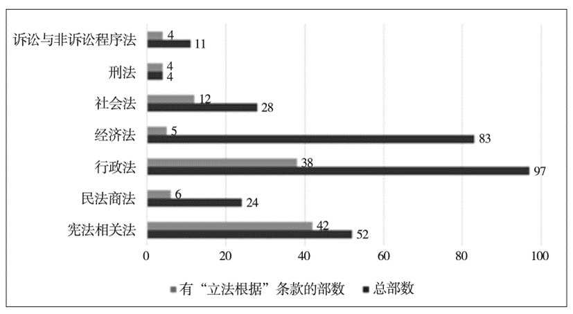 图2不同法律部门中立法根据条款的分布情况