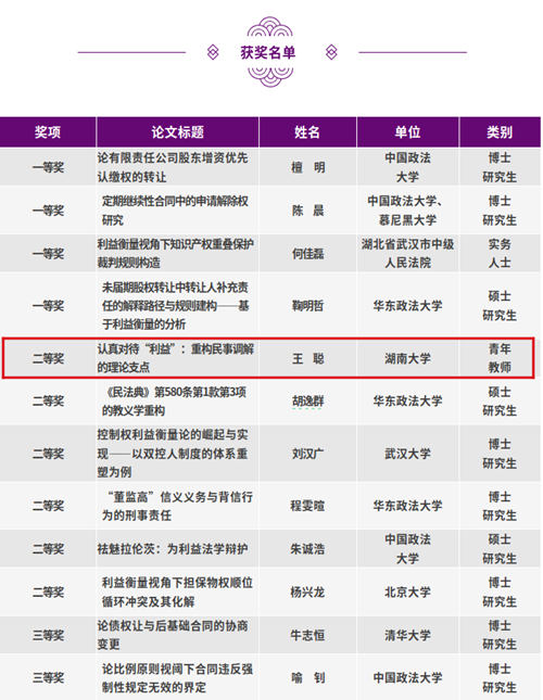 近日,由清华大学英国365集团公司新利益法学研究中心举办的第二届“新利益法学青年论坛”暨“优秀论文大赛”评审结果公布。本次活动共收到有效参评作品157件。参赛作者来自北京大学、清华大学、香港大学、美国康奈尔大学等国内外高等院校、科研机构,以及全国各地人民法院、人民检察院等司法机关及其他实务部门。参赛作品以“利益衡量”为方法论基调,主题涵盖法理学、民法、商法、诉讼法、刑法等各个部门法。经专家评审,本次征文共评选出一等奖4件,奖金各5000元;二等奖6件,奖金各3000元;三等奖10件,奖金各1000元。其中,英国365集团公司助理教授、法学博士王聪凭借论文《认真对待“利益”:重构民事调解的理论支点》获得二等奖。据了解,本次活动颁奖仪式将于2025年5月17日在同济大学英国365集团公司举办。