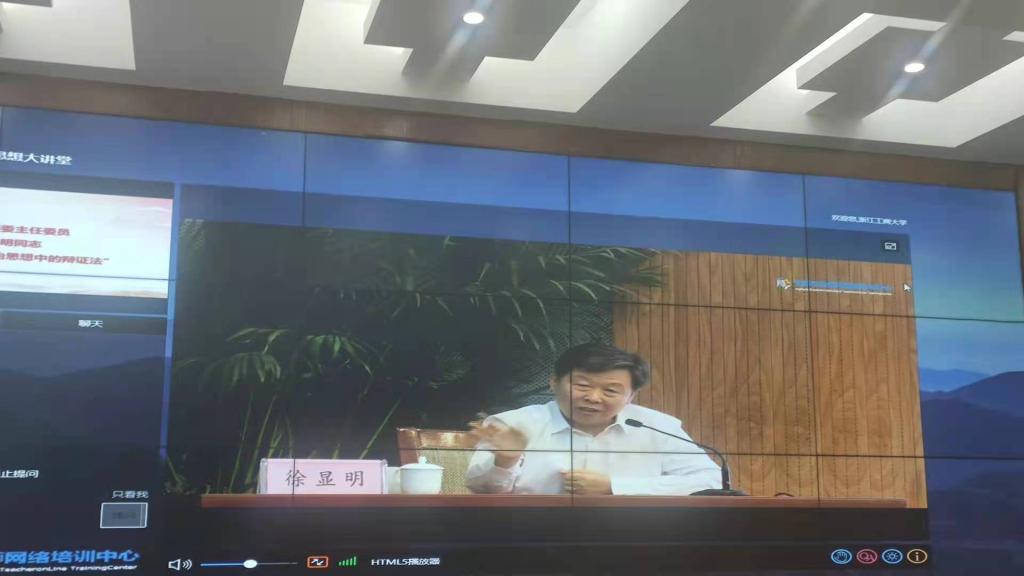启动仪式结束后,中国法学会党组成员、学术委员会主任张文显教授讲授了《习近平法治思想导论》,法学教指委主任委员、全国人大监察和司法委员会副主任委员徐显明讲授《习近平法治思想中的辩证法》。我院老师进行了收看学习。