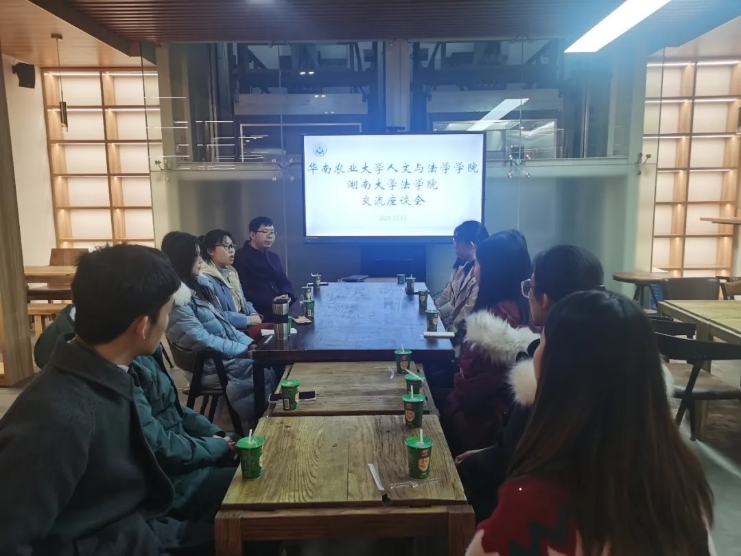 蒋海松副院长代表学院对华南农业大学人文与法学学院的来访表示热烈欢迎。应来宾建议,蒋海松介绍了我院本科培养方案、计算机与法学交叉学科建设、“新文科”建设、课程思政和实践教学等方面展开,着重介绍了我院人才培养概况。此外,他分享了我院举办全国法科学生写作大赛、开设各学科案例分析课程与假期提升训练营等重要经验,展示了我院在学生培养工作方面的建设成果和品牌特色。随后,龙韶老师对模拟法庭赛事参赛情况进行分享,重点就“贸仲杯”辩论赛备赛期间赛队成员选拔、赛队间交流和队员的培训等方面进行讲解。