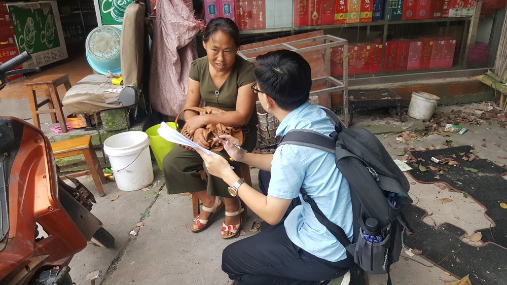 (赫曦队员走村入户,向基层群众发放调查问卷)