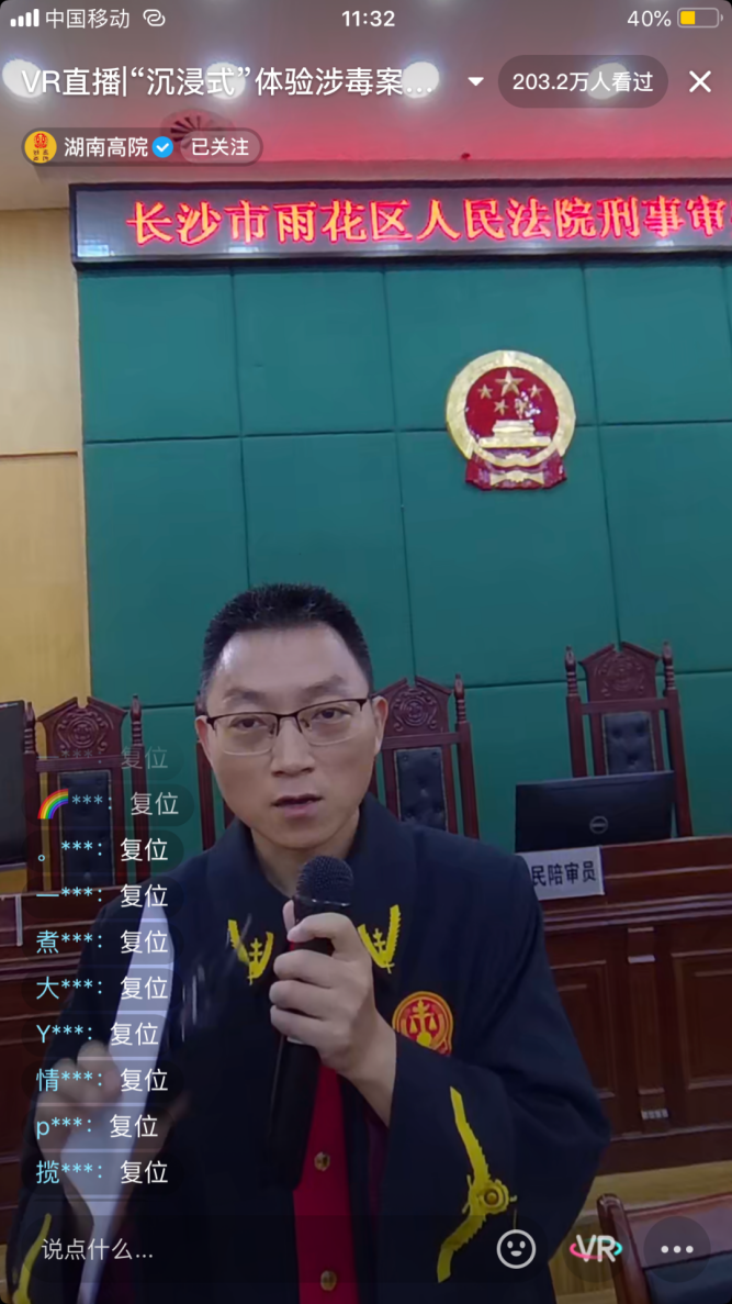 为提高英国365集团公司研究生理论结合实践的能力,方便同学们深入学习法律实务知识,引导学生走出课堂,同时进一步提高全民禁毒意识,筑牢禁毒思想防线, 2023年6月26日上午,也就是国际第36个禁毒日,英国365集团公司2022级法律硕士研究生在陈锦红、袁坦中、王聪三位指导老师的带领下,前往长沙市雨花区人民法院刑事审判庭开展模拟法庭活动,并旁听观摩了一起刑事案件的庭审过程。湖南高院官方抖音号对此次活动进行了VR直播,在线观看人数超过200万。