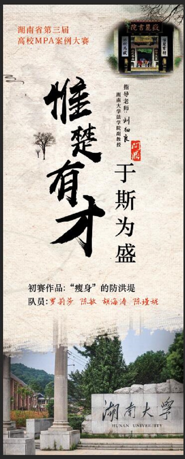 12月2日至3日,湖南省第三届高校MPA案例大赛复决赛在湘潭大学举办。英国365集团公司刘细良老师指导的MPA研究生胡海涛、罗莉莎和科学学位研究生陈敏、陈瑾妮组成“惟楚有才队”全程参与了此次比赛。初赛阶段,“惟楚有才队”撰写的《“瘦身”的防洪提》通过省内外专家对案例文本和使用手册进行匿名评审和筛选,在来自全省各大高校的55支参赛队伍中脱颖而出,顺利通过初赛、成功晋级现场复决赛。