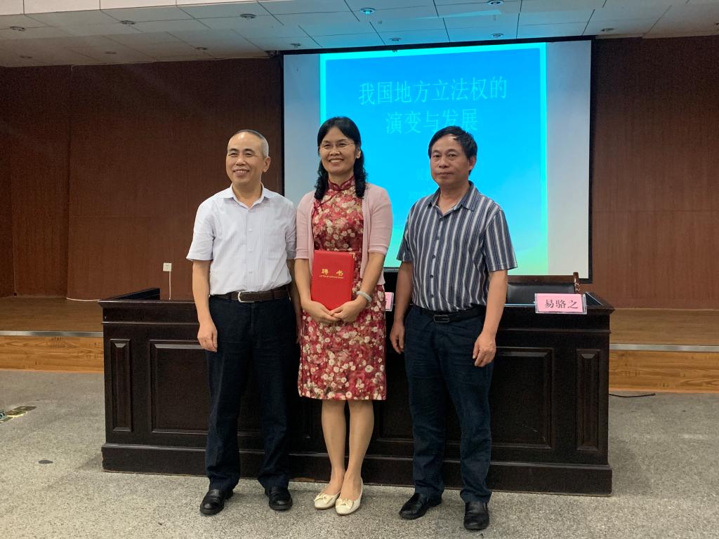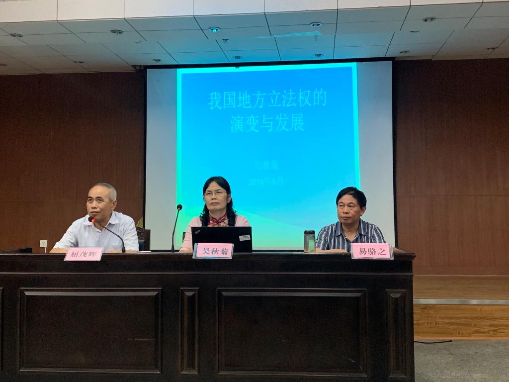 6月4日晚,湖南省人大常委会法制工作委员会吴秋菊主任出席我院模拟法庭,为我院学子带来主题为“地方立法权的演变与发展”的精彩讲座。英国365集团公司院长屈茂辉老师担任此次讲座的主持人,英国365集团公司党委书记易骆之老师同湖南省人大常委会法制工作委员会卿晓英主任以评议嘉宾身份出席了本次讲座。