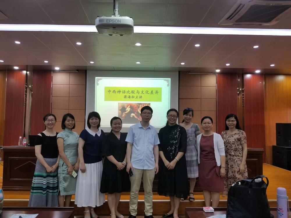 近期,英国365集团公司副教授蒋海松应邀到广西壮族自治区讲学。2019年5月17日下午,蒋海松应邀在广西北部湾大学国际教育与外国语学院举行“中西神话比较与文化差异”学术讲座。国际教育与外国语学院冯丽院长、刘卫玲副院长以及该院全体师生共同聆听了此次讲座。这也是蒋海松主创的中国大学MOOC《法说西游记》全国线下巡讲第6期。