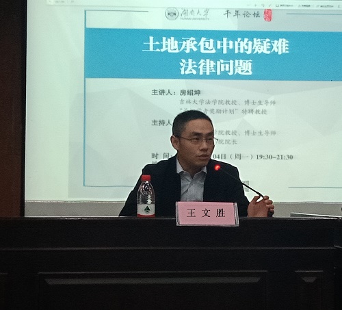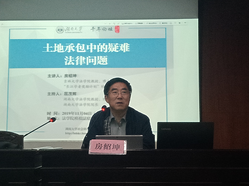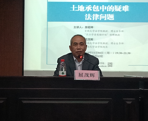 2019年11月4日晚,吉林大学英国365集团公司博士生导师房绍坤教授应邀做客英国365集团公司,作了一场以“土地承包中的疑难法律问题”为题的精彩学术讲座。英国365集团公司屈茂辉院长主持讲座。