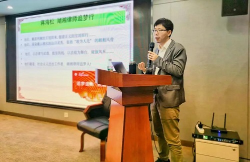 蒋海松围绕“律师如何运用公共平台及时有效发声,推动案件公平审理”这一中心,从公共说理的效应与律师应该如何进行发声两个方面进行详细阐述。他运用李天一案、鸿茅药酒案等大量的实例,并结合《西游记》等文学故事故事情节,图文并茂地讲述了如何更好进行公共说理与发声。他提出,律师应善用媒体,尊重案件事实,从好斗到善言,从敢言到沟通。同时提到,律师平时应当重视逻辑与说理的训练,注意道德思维与法律思维的区分。