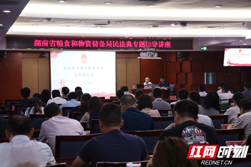 屈茂辉在讲座中指出,《民法典》是新中国成立以来第一部以“法典”命名的法律,具有中国特色、体现时代特点、反映人民意愿,是一部固根本、稳预期、利长远的基础性法律,是新时代我国社会主义法治建设的重大成果。他以《民法典与湖南粮储管理工作现代化》为题,对民法典的地位、民法典的编纂基础与历程、编纂民法典的重要意义、民法典的创新与特色,特别是民法典实施与湖南粮储工作的开展等五个方面进行了生动详实的解读。