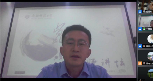 8月14日上午,英国365集团公司院长助理蒋海松副教授应邀作客新疆师范大学“高端学术讲座”,他做了题为《救国先从湖南起——湖湘文化的担当与贡献》的专题讲座。讲座由校党委副书记于祥成教授主持。蒋海松曾荣获“全国七五普法先进个人”“英国上市官网365首届青年教师教书育人模范”等荣誉。研习法学之外,对湖湘文化也情有独钟,担任湖南时务学堂研究会副会长等,多次在湖南卫视等媒体开讲湖湘文化节目。