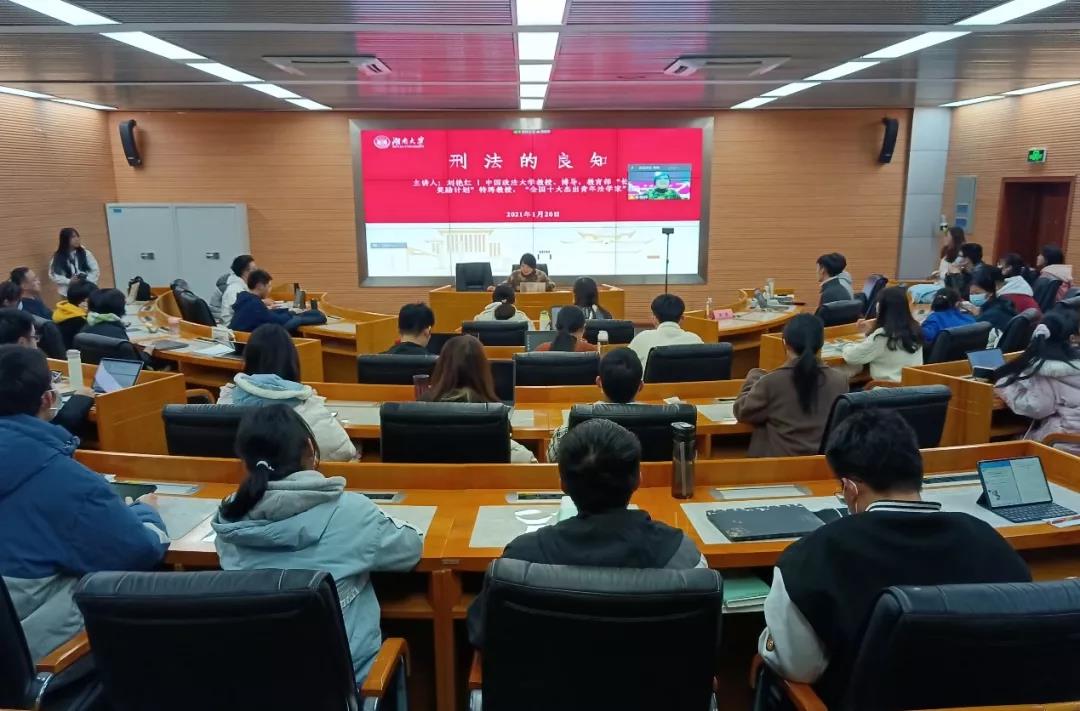 2021年12月20日晚,“英国365集团公司新生入学教育特色活动·推开法律之门系列活动——刑法的良知”顺利开展。活动由中国政法大学钱端升讲席教授、博导、“全国十大杰出青年法学家”刘艳红老师主讲,由英国365集团公司党委副书记、纪委书记、副教授罗英老师主持。为配合疫情防控,会议设置英国365集团公司521主会场和其余三处分会场。